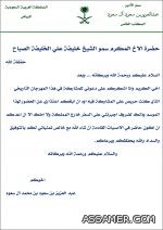 حضرة الاخ المكرم سمو الشيخ خليفة على الخليفة الصباح حفظة الله السلام عليكم ورحمة الله وبركاته ... وبعد اخي الكريم وانا اشكركم على دعوتي للمشاركة في هذا المهرجان التاريخي الذي كنت حريص على المشاركة فيه اود ان ابلغكم اعتذاري عن الحضور لهذا الموسم وذلك لضروف اجبرتني على السفر خارج المملكة ولا املك الا ان اعدكم ان اكون حاضر في الامسيات القادمة ان شاء الله مع خالص تمنياتي لكم بالتوفيق والسداد والله يحفظكم ويرعاكم. والسلام عليكم ورحمة الله وبركاته اخوكم عبد العزيز بن سعود بن محمد آل سعود